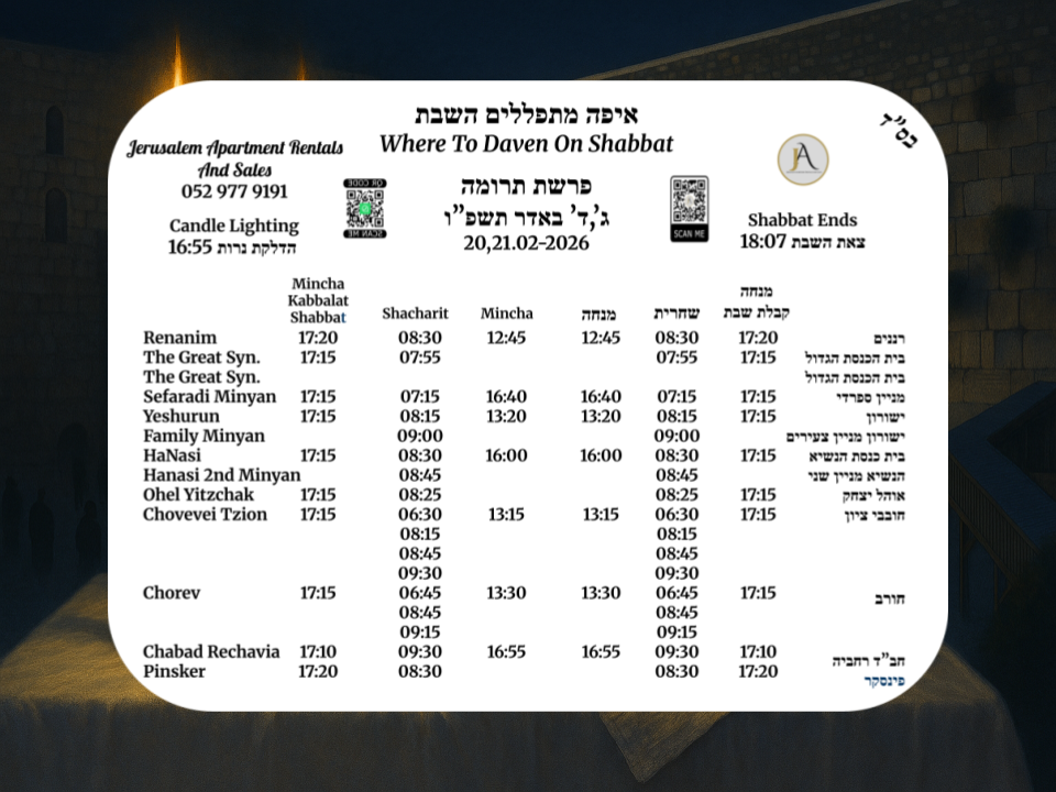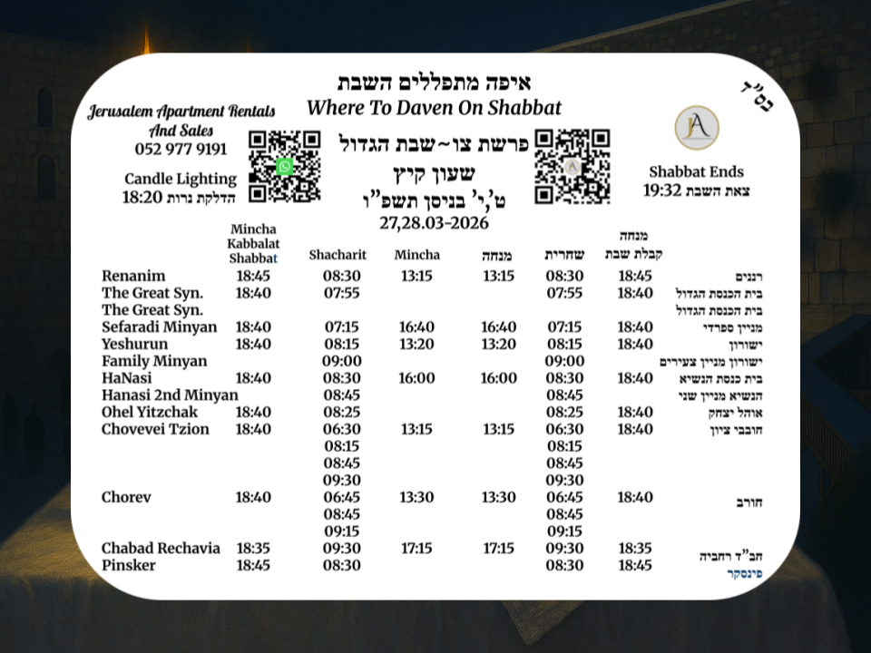Whether you’re renting, buying ,selling, looking for a Kosher Vacation Apartment, or need professional property management services for your residence, Jerusalem Apartment Rentals and Sales offers the kind of attentive, tailored service that big agencies simply can’t match.