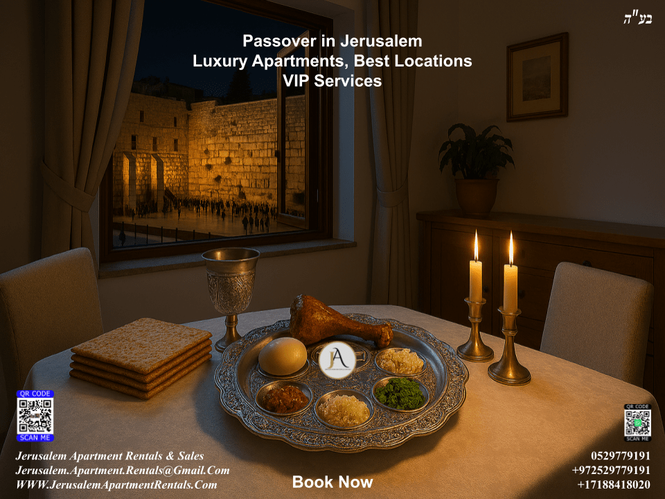 Choosing a luxurious kosher apartment from Jerusalem Apartment Rentals and Sales means you’re not just visiting—you’re living the holiday in its fullest expression.Make Passover 2026 unforgettable. It’s never too early to book your dream apartment and experience the magic of Jerusalem during Passover like never before!